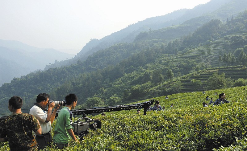 央視攝制組在八仙觀茶場拍攝道茶采摘畫面