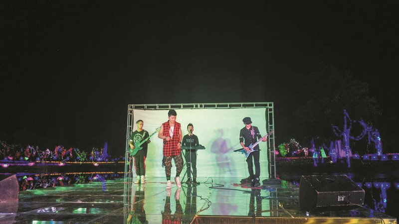 該樂隊(duì)是第一次到黃龍壹號(hào)生態(tài)園演出,提及對(duì)園區(qū)的印象,主唱楊寒告訴記者:“這里的夜晚很涼快,而且這個(gè)水上舞臺(tái)很特別,燈光倒映在水中相映成趣,我們很難得在這么浪漫的環(huán)境下唱歌,所以唱得很盡興,觀眾也很給力。希望能給大家留下難忘的回憶?!?