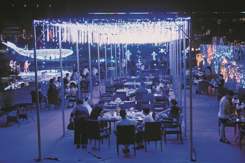 在微風(fēng)習(xí)習(xí)的湖邊,美食餐廳人氣火爆、座無虛席。用餐環(huán)境舒適愜意,獨(dú)一無二的燈海環(huán)抱場景,是別處無可比擬的美好體驗(yàn)。