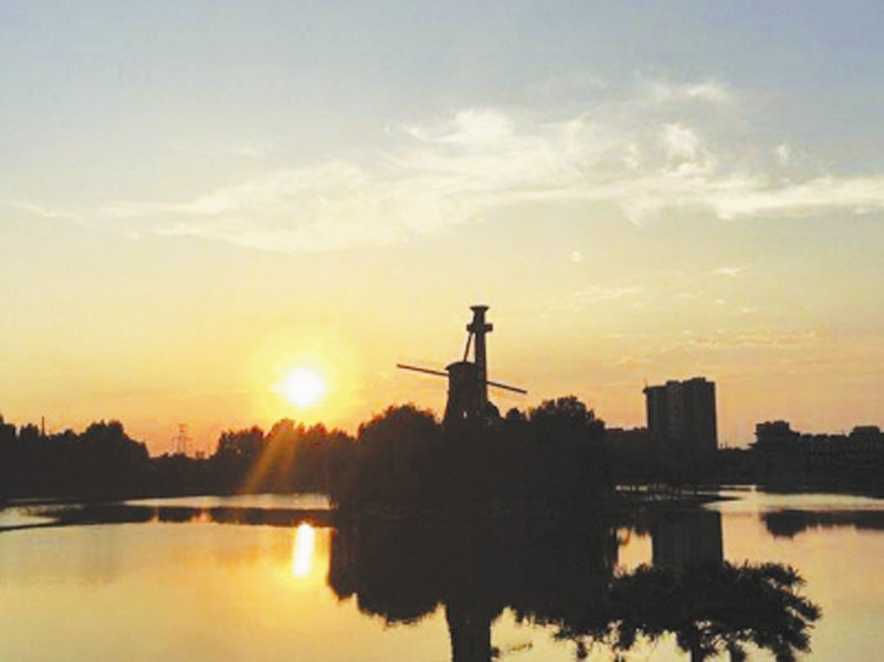 夕陽下的荷蘭風(fēng)車。