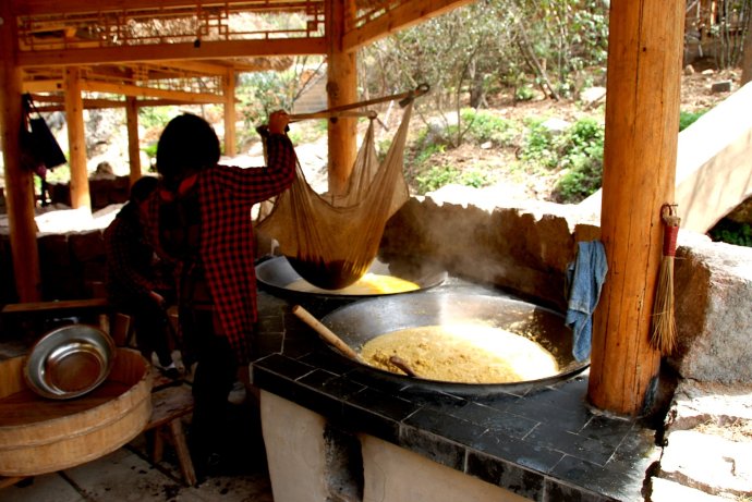 景區(qū)牌坊是石頭砌成的原始巴人茅屋,具有原始,古樸的風(fēng)格,關(guān)于天生橋有一個(gè)傳說:當(dāng)年太上老君煉丹在此取水時(shí),正是山洪瀑發(fā)之時(shí),黃巖河石步子全部被淹沒,行人無法通過,這時(shí)太上老君將手中的浮塵架于黃巖河兩岸,立即變成了一座石橋, 這里的山民從此不再受山洪瀑發(fā)時(shí)河水的阻擋。當(dāng)時(shí),人們稱它“幸福橋”。