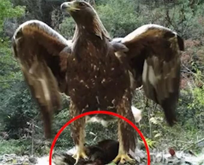 11月3日12時48分,位于神農(nóng)架太陽坪生態(tài)保護中心龍?zhí)堆挛萋愤叺募t外相機抓拍到10秒的視頻素材以及3張照片,一只高約1.2米的金雕把一只豬獾踩在地上并不斷拍打雙翼,照片和視頻經(jīng)朋友圈轉(zhuǎn)發(fā)后引發(fā)熱議,網(wǎng)友調(diào)侃:“鷹”姿颯爽、“霸氣外漏”,還有部分網(wǎng)友表示:“真相了!姑姑和過兒婚后隱居神農(nóng)架?不信你瞧這是啥!”