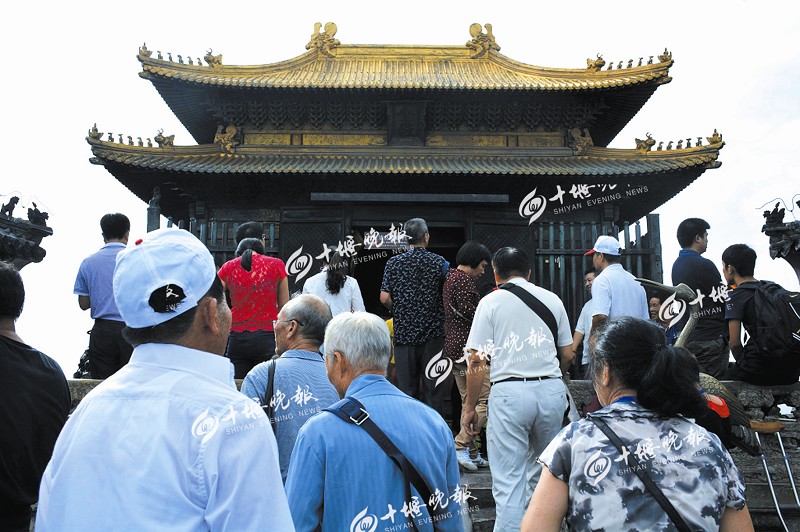 經(jīng)轉(zhuǎn)運(yùn)殿、太和宮、紫金城,參觀全國最大的銅鑄鎏金金殿,體驗(yàn)玄武風(fēng)水奇觀。站在海拔1612米的武當(dāng)之巔,旅行團(tuán)成員有人虔誠地朝拜真武祖師,為家人親朋祈求福壽康寧,有人則默默地感受著72峰朝大頂?shù)膩児牌嬗^。